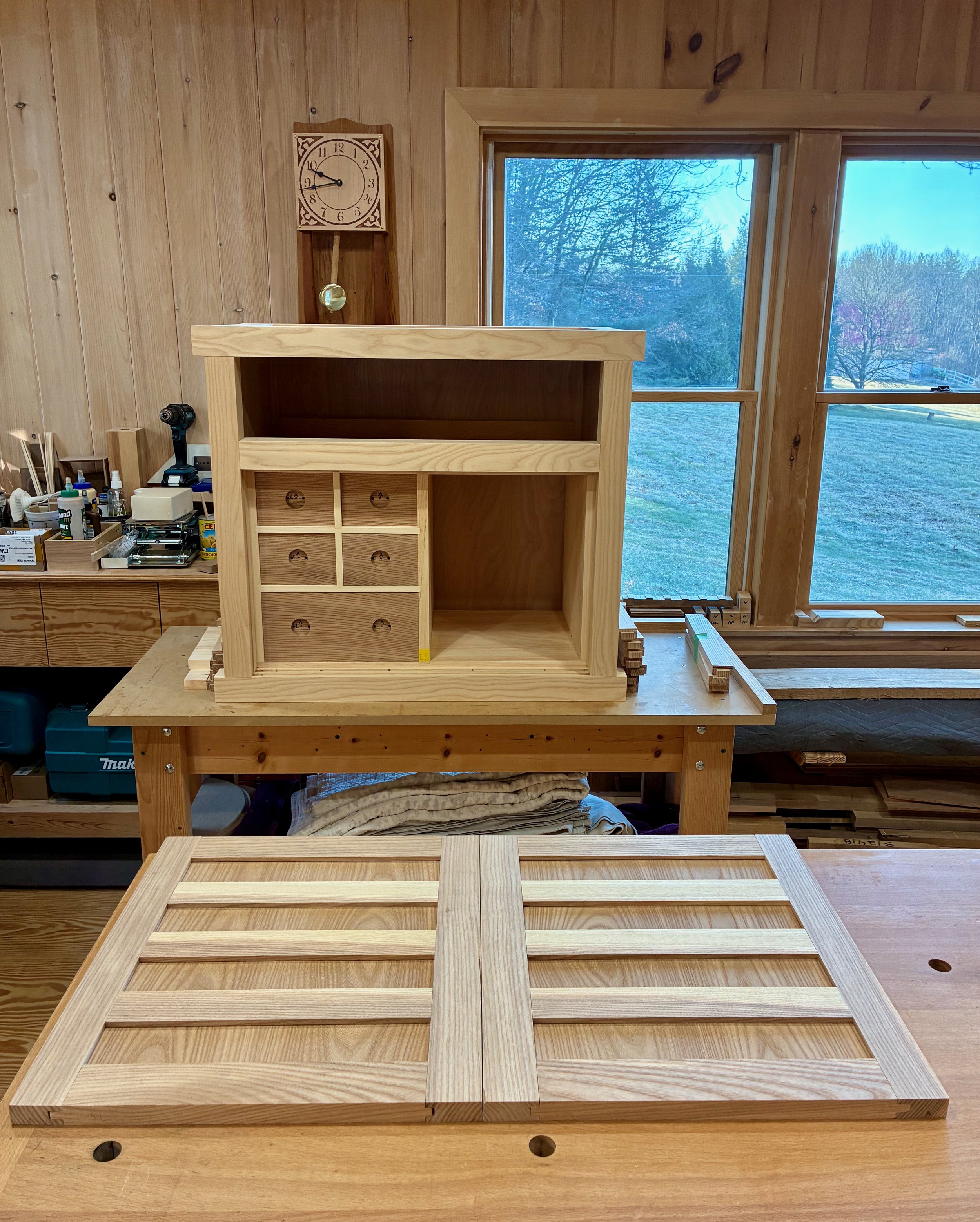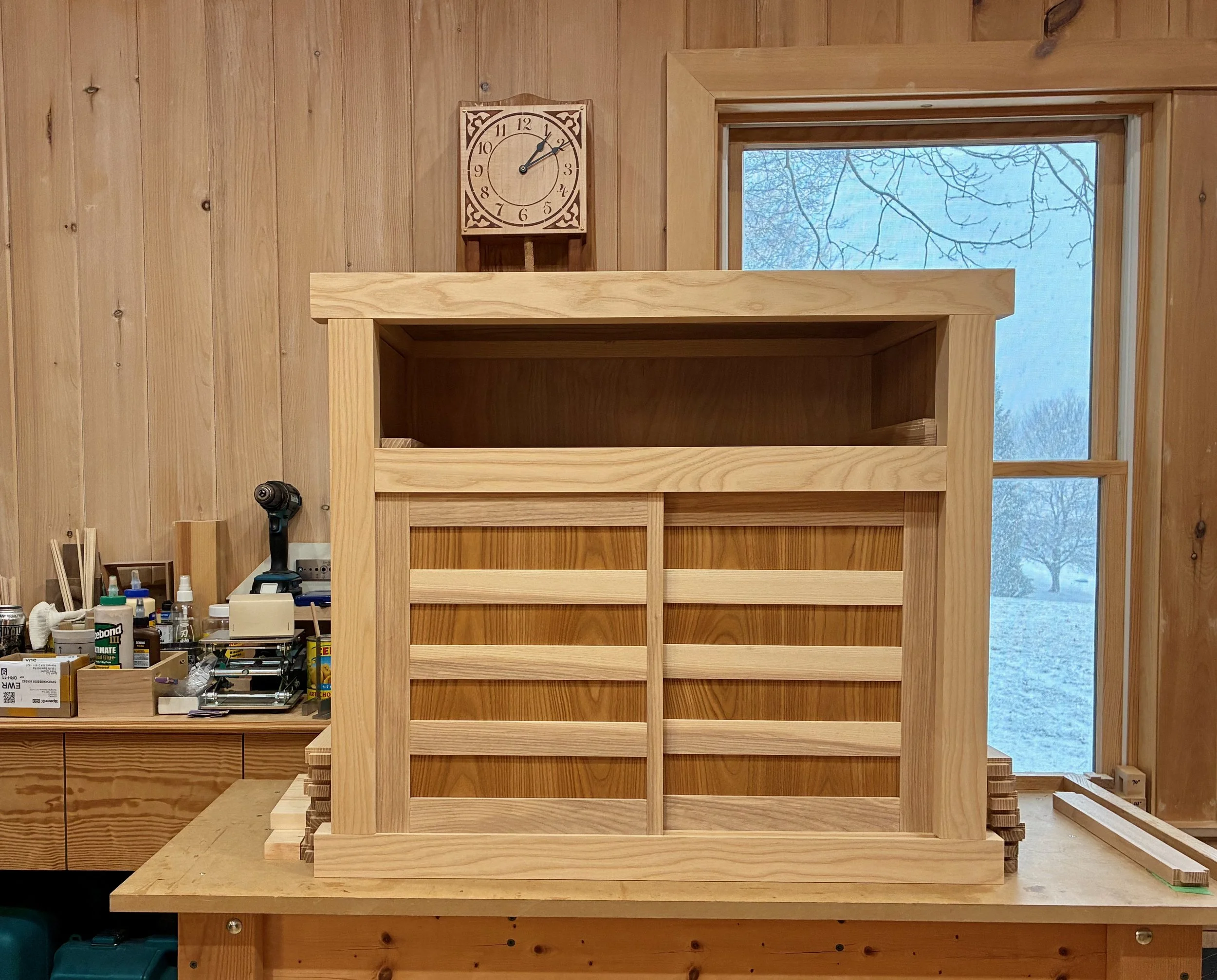 Next came the sliding doors. These would be constructed from quarter sawn ash and elm to match the tansu sides.