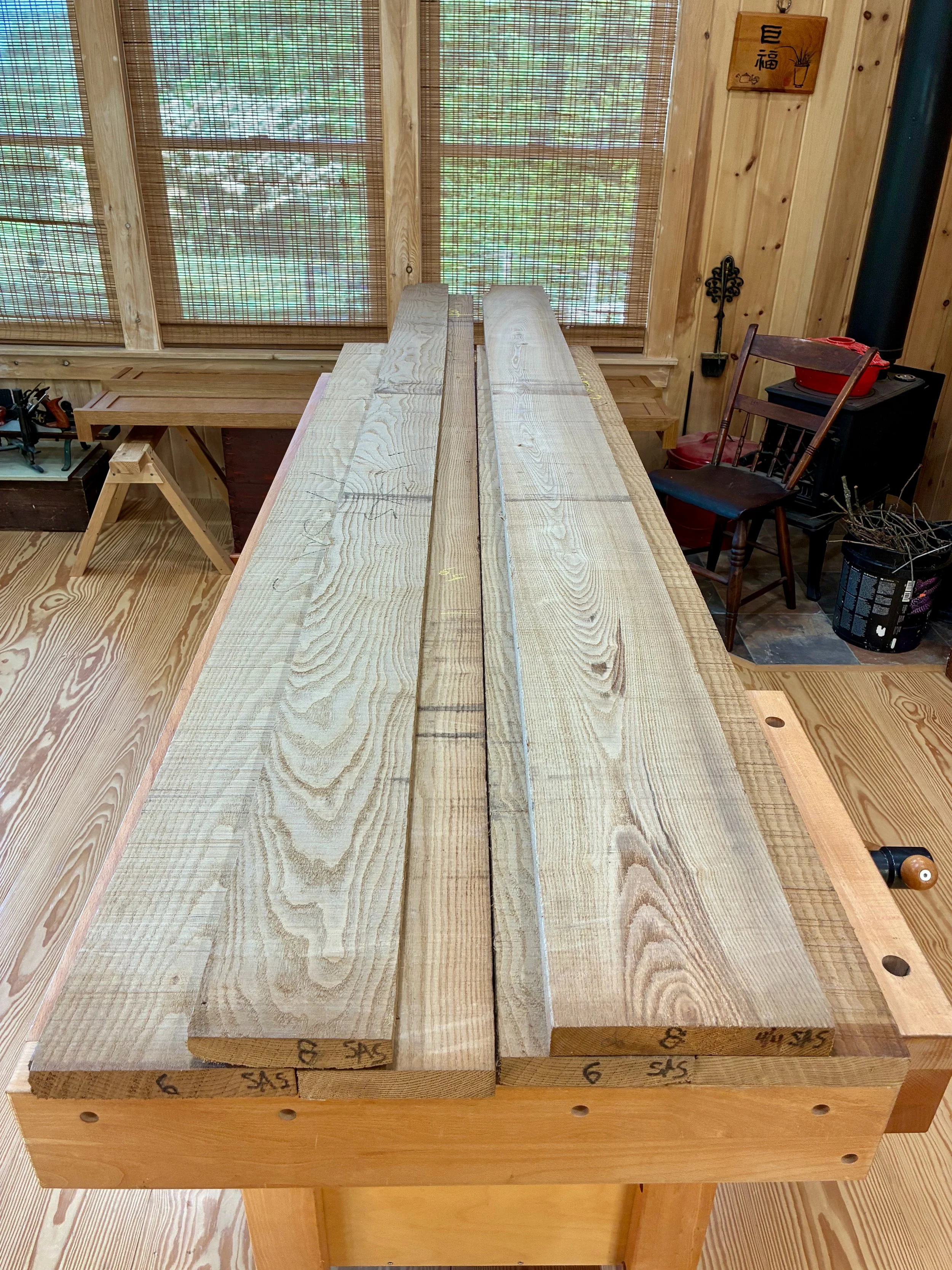 White oak boards, two quarter sawn and one rift sawn, were procured from Reader’s Hardwood Supply. I purchased these among a bunch of boards for use in the next project and so forgot to take a picture before diving in.