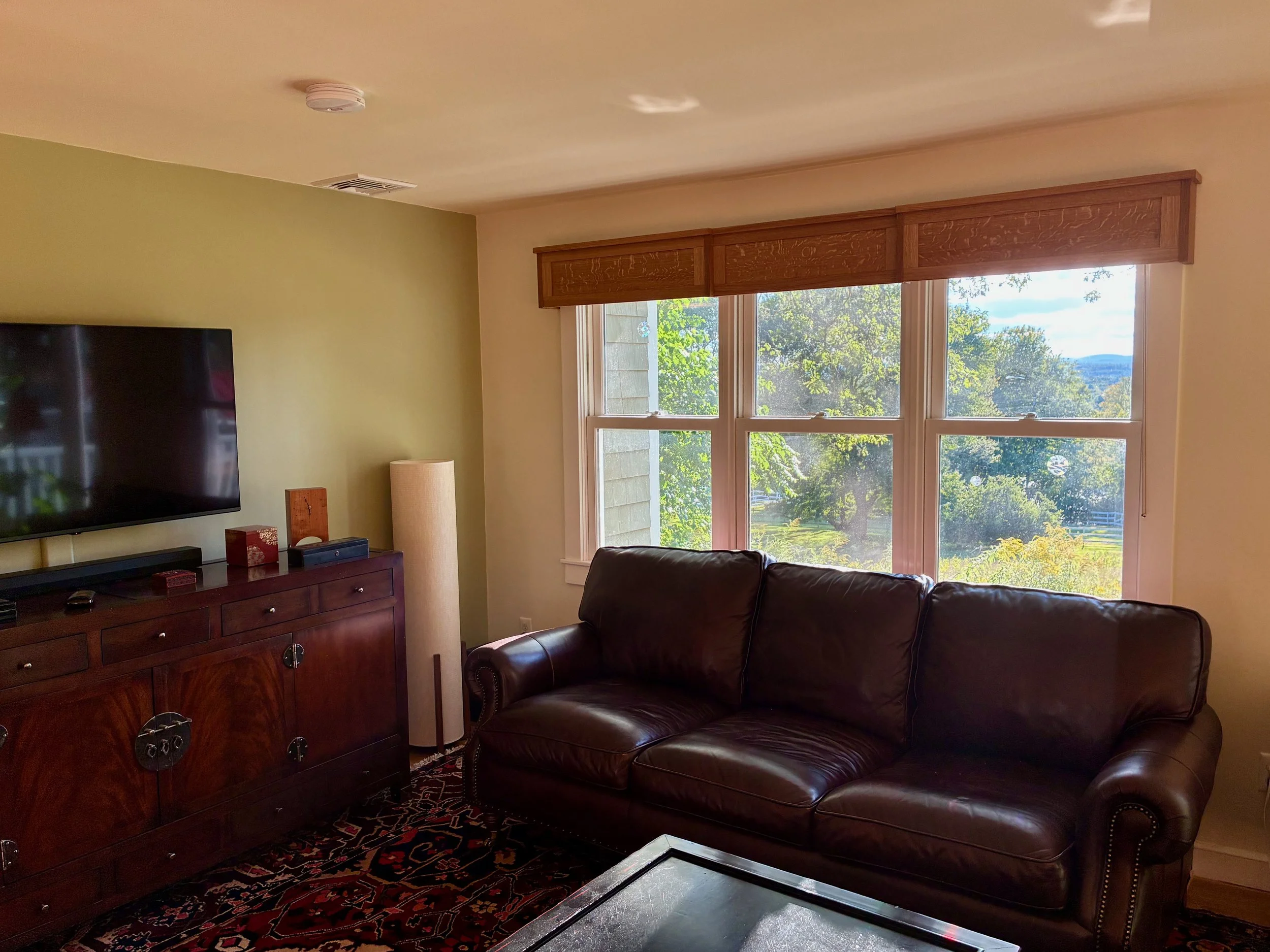 There are four banks of windows in our living room and they all might deserve a Craftsman cornice, but the goal of this Project was to fit out the two windows flanking the fireplace to see whether this manner of adding wood to the decor could satisfy desire.