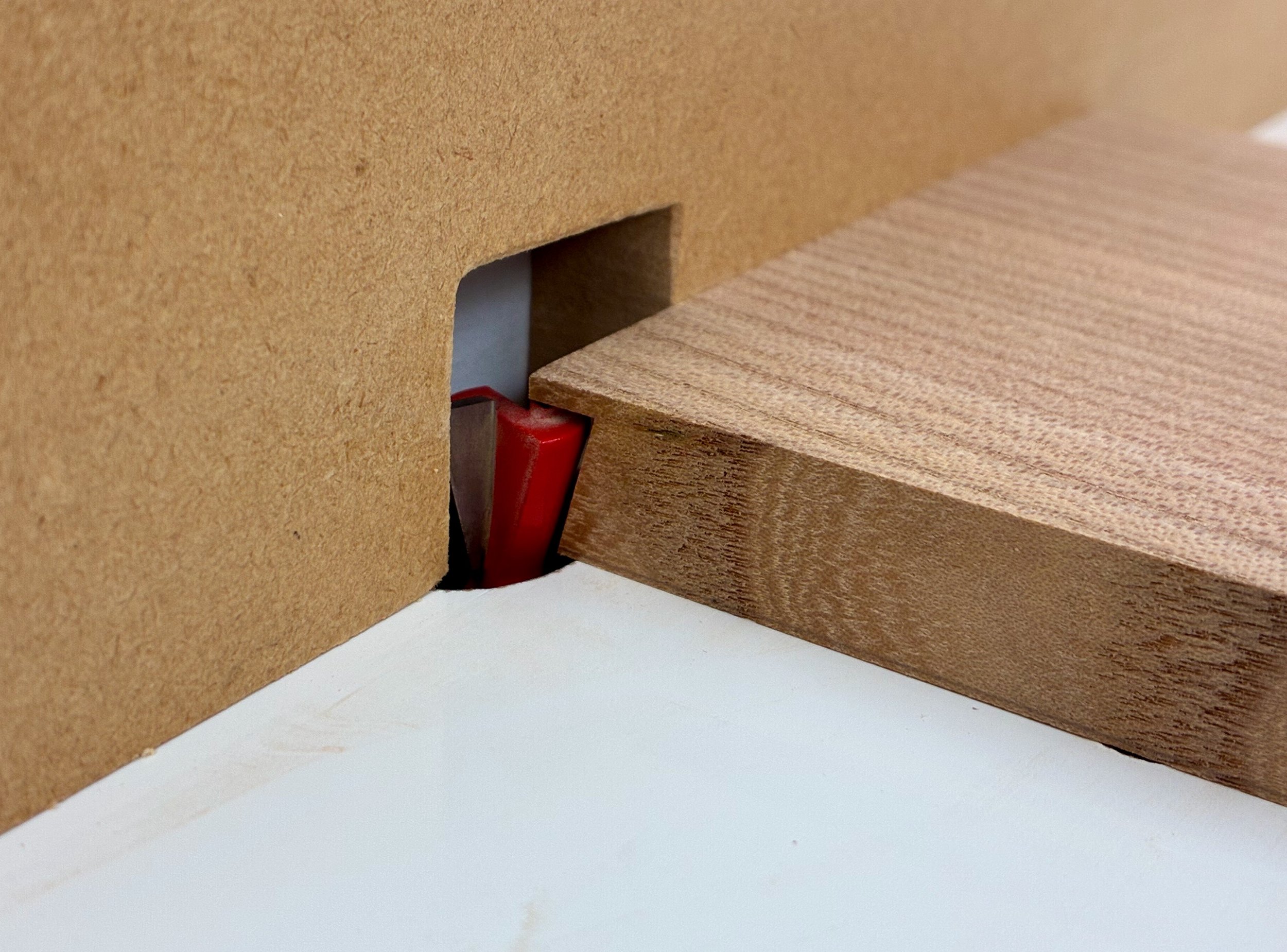 Cutting a half-dovetail rabbet into a drawer front at the router table