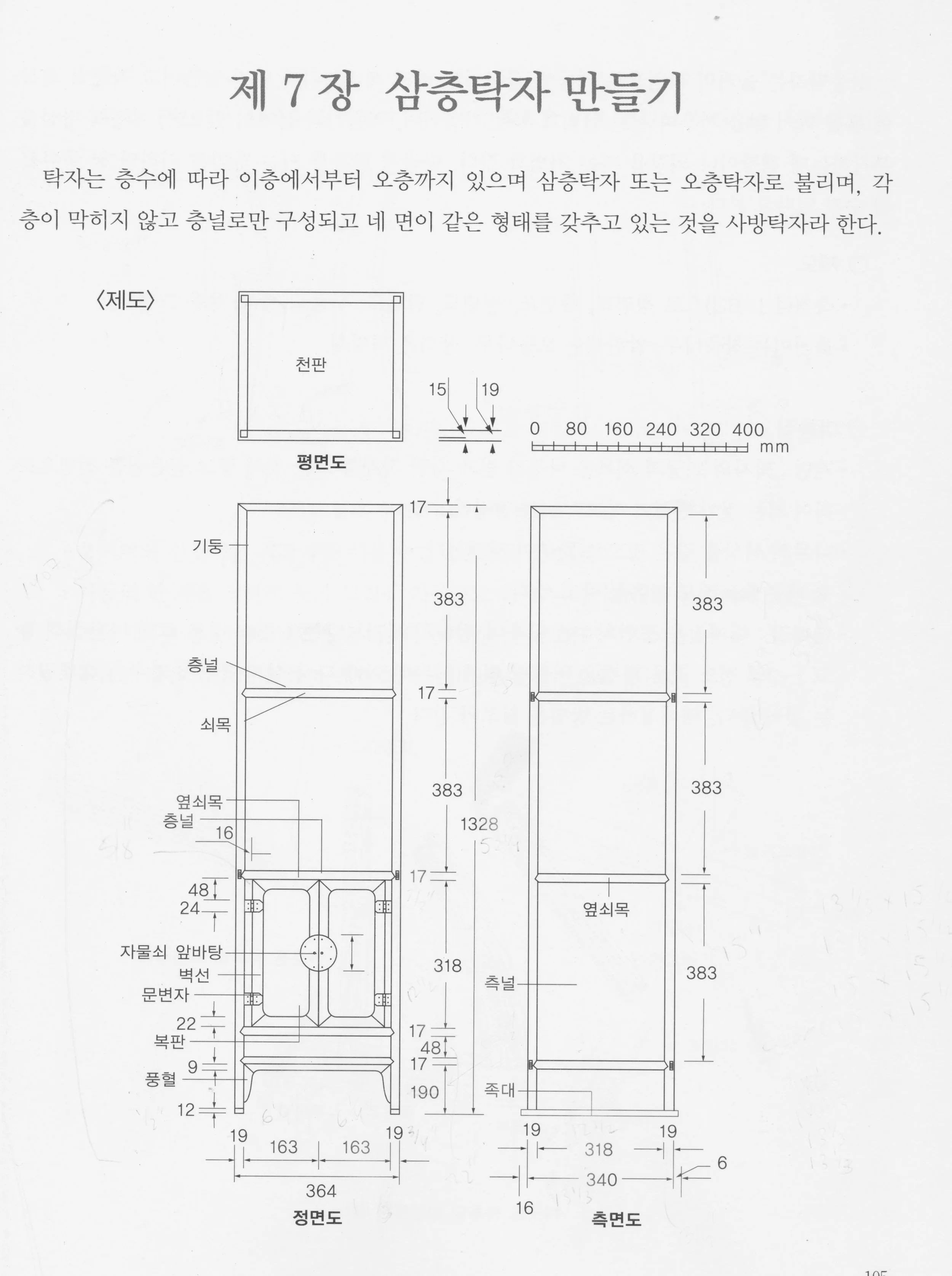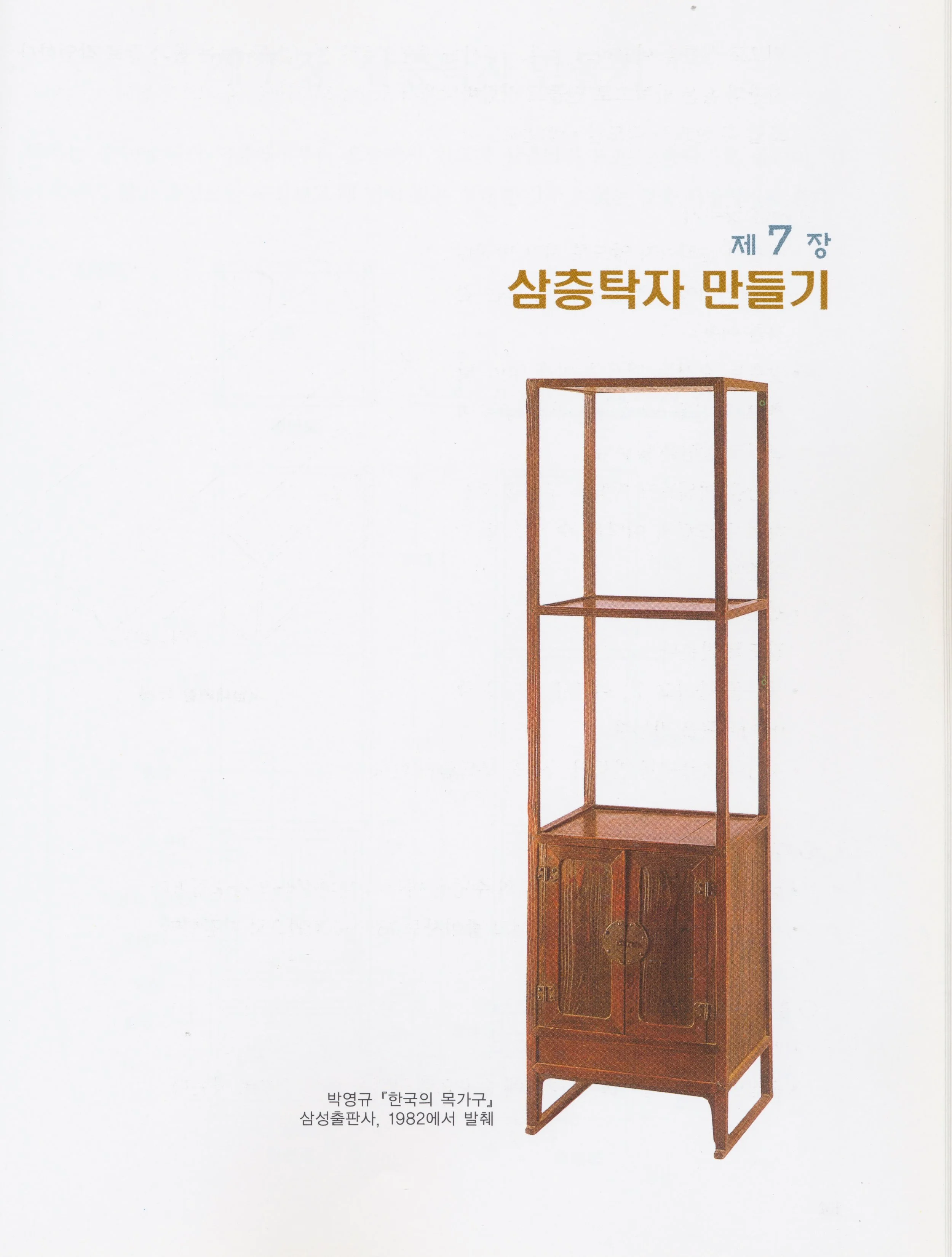 It was easy to choose the version of a “storage and display stand” for this build as I have had my eye on it ever since the 2016 Korea trip. During that visit I picked-up a nice little book called Making Traditional Wooden Furniture and was smitten with the dainty version described in the back section where some construction plans could be found. Oh, and according to Google Translate, they give it a new name: “Three Story Table”.