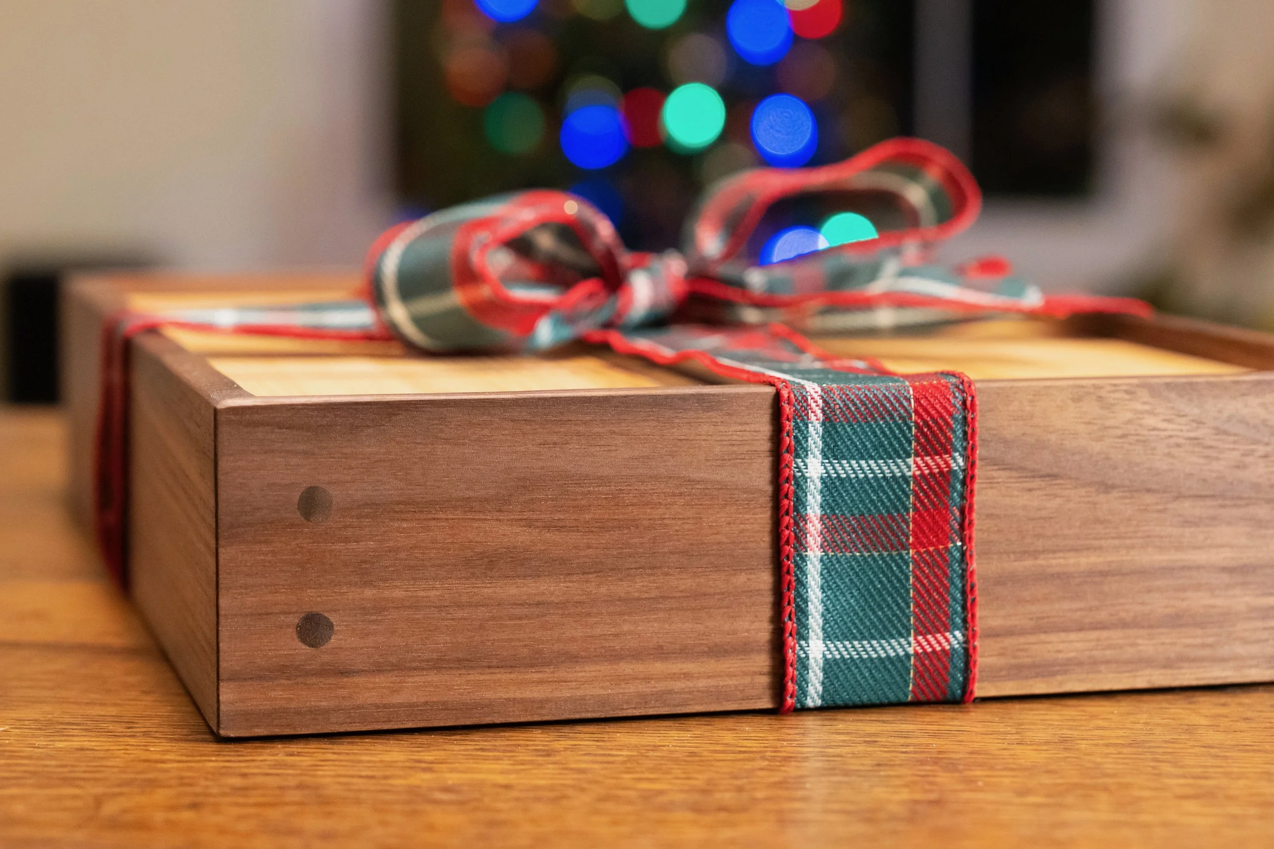 "I like to section hike the Appalachian Trail and the Long Trail and I frequently refer to topographical maps in my adventures. When I saw the wood we chose in the lumber yard, the grain immediately reminded me of the maps. I love that the finished project allows me to think of hiking whenever I see the wood grain inside."